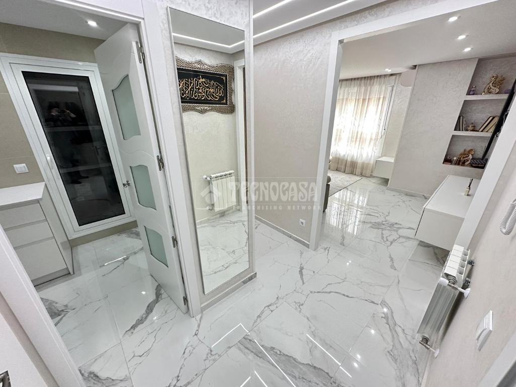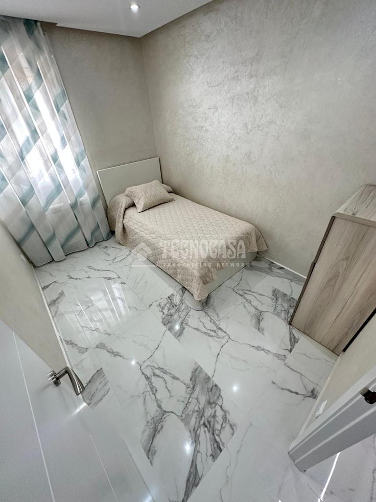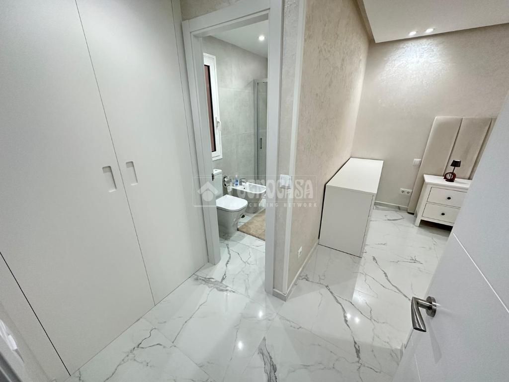 El inmueble dispone de aire acondicionado frío/calor en salón, calefacción independiente de gas natural, suelos de mármol blanco, paredes lisas estucadas con brillo, ventanas de climalit oscilobatientes con toldos en toda la vivienda incluido el patio y puertas lacadas en blanco.